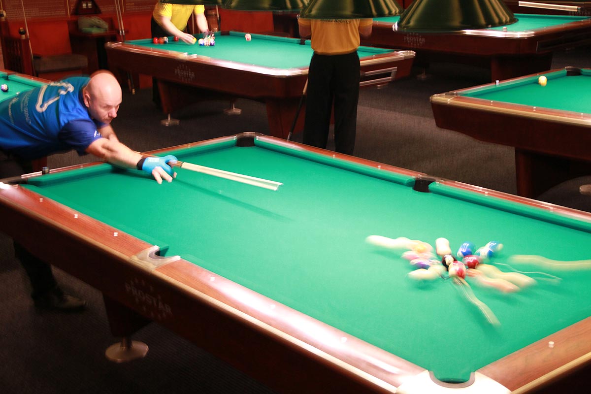 Jednoznačný průběh měl zápas mezi M. Hajdovským a A. Houdkem, kdy druhý jmenovaný prohrává 8:2, podle svých slov měl dvě šance, které nevyužil. V dalším zápase Petr Urban rozsekal Honzu Meisnera, kdy ho nepouští do hry a vyhrává taktéž 8:2. Slavo Dorobant v nervy drásajícím zápase poráží těsně Josefa Nechvíle 8:7, když v rozhodující hře Pepa Nechvíle kazí nahrávku a Slavo dohrává těžký stůl. Dušan Nohynek poráží Davida Žalman, když dá pět čistých a předvede excelentní výkon.