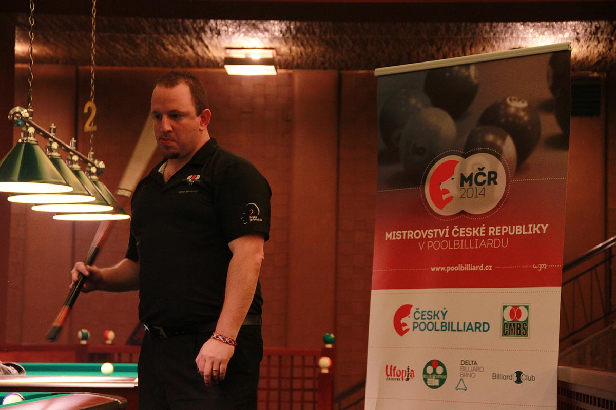 Tempo finálového zápasu vyhrál Slavo a hned dává dvě čisté, ve třetí dělá chybu a dohrává Marek. V dalším průběhu zápasu Slavo víc chybuje a Marek využívá chyb a dohrává, co jde. Finále nakonec skončí jednoznačně 8:3 pro Marka, který potvrzuje formu a nejúspěšnějšího účastníka MR 2014, kdy získává tři mistrovské tituly a jedno třetí místo.