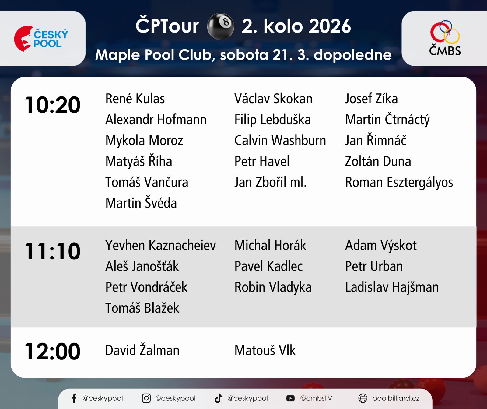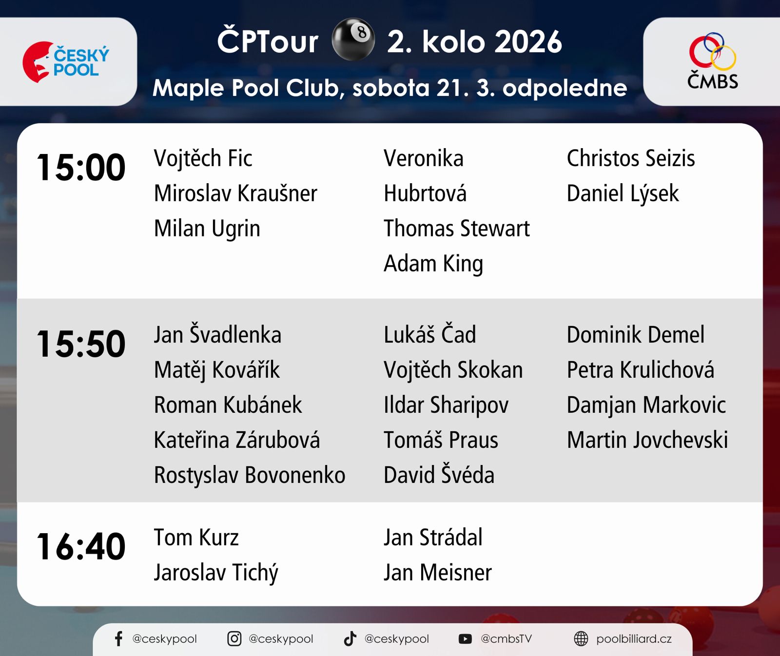 Bude 16 účastníků, kdo – tak to bude jasné po čtvrtém kole ČPTour (ti, kdo se kvalifikují na Czech Pool Masters, nesmějí hrát finále regionů).