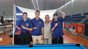 Nyní k vlastnímu hraní. Včera naši reprezentanti nastoupili ke svým zápasům v tradičně první disciplíně, kterou je 14.1 nekonečná. I přes rozehrání na kempu a dále v den příjezdu je znát, že se se stoly pořád seznamují, z čehož pramenily chyby po předchozích nedojetých/ přejetých nahrávkách či jistotách. Až na Matěje, ke kterému na první zápasy na ME nebyl los vůbec nakloněn, kluci odehráli pěkné zápasy a co do herní kvality všeobecně mohli minimálně v pavouku o řád výše. Ale na kdyby se nehraje, situace a chyby v zápasech jsme rozebrali a nyní se soustředíme na disciplínu 10 ball.