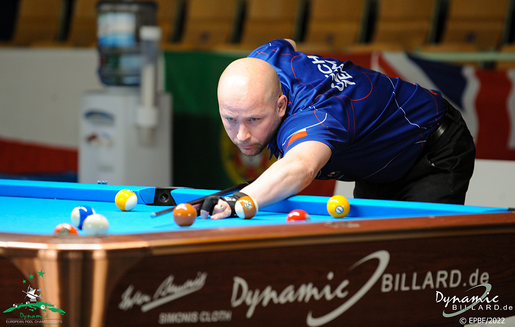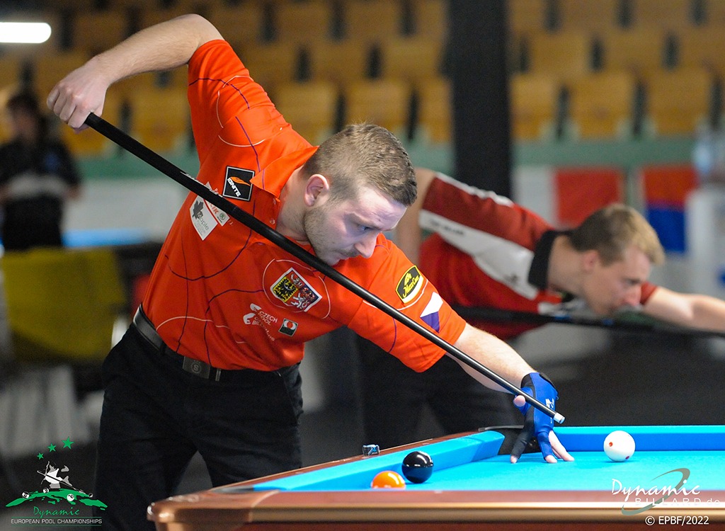 V disciplíně 9Ball jsem měl svůj první volný los v prvním kole a vítězstvím se ke mně probojoval velezkušený švýcarský hráč Dimitri Jungo. Věděl jsem, že zápas bude náročný, protože Dimitri patří mezi evropskou špičku. Zápas zvládám skvěle a vítězím 9:6 a připisuji si na své konto další cenný skalp a dostávám se do závěrečné fáze LAST64. Zde mi los moc nepřeje a přiřazuje mi dalšího top hráče z Finska Petriho Makonnena. Štěstí nestojí moc na mojí straně, a i s minimem chyb v zápase bohužel prohrávám 3:9 a loučím se s ME jednotlivců. V týmové soutěži se nám podařilo vybojovat cenné 5 místo. I když jsem lehce zklamaný, protože medaile byla opět blízko stejně jako v roce 2019 v italském Trevisu. Ve čtvrtfinálovém zápase si připisuji další skalp v podobě Caspera Matikainenna ale Uski proti Davidovi a Makonnen proti Romanovi předvádějí učebnicový pool a klukům nedávají vůbec žádné šance v jejich zápasech. Celkově bych ME z mého pohledu zhodnotil jako povedené. Každým rokem se mi daří mít lepší a lepší výsledky a doufám, že na tyto výkony budu dále navazovat