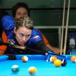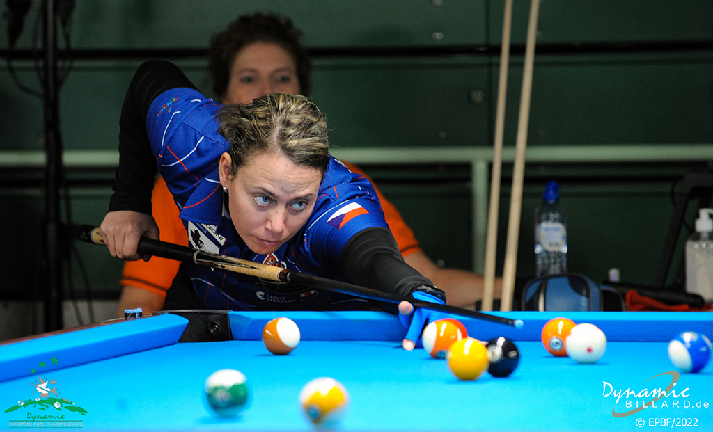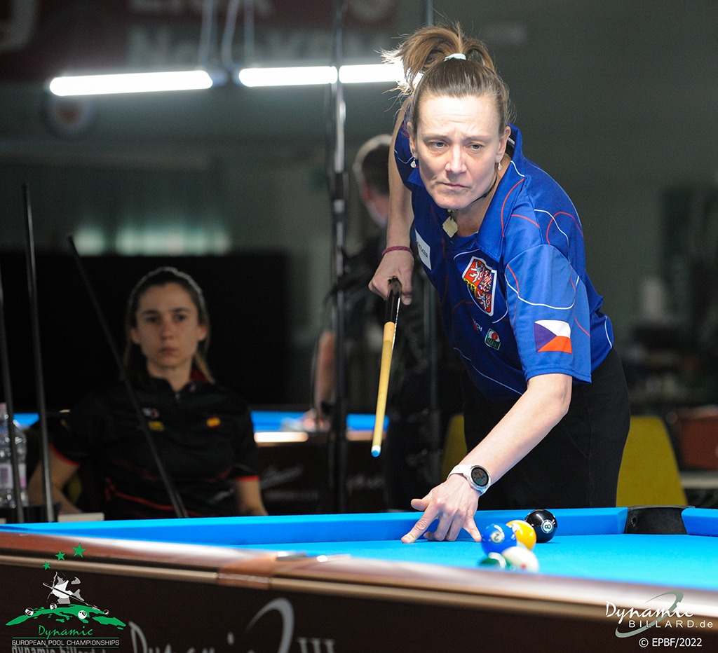 Když proberu 9 ball, tak jsem v prvním zápase hrála proti Louise Furberg, a s ní je to vždy hop nebo trop. Buď hodně kazí nebo hraje skvělý pool, především u 9 ball to tak je. Já se trápila s rozstřely, ale navíc nemohla najít svoji hru. Takže jsem po zásluze prohrála. V béčku na mě čekala mladá Lynn Pijpers, velice přemotivovaná hráčka, a bohužel jsem se od některých věcí nemohla odprostit a po pár chybách jsem prohrávala 3-6. Nic nevzdávala a hrála jsem skvěle, kdy jsem neudělala chybu a vyrovnala. Nakonec jsem v poslední hře šla na stůl, ale těžká nahrávka na dvojku mi přejela tak o 5cm a já se bála jít do riskantního strku. Hrála jsem jistotu, špatnou. Nicméně ona svoji přemotivovaností do toho šla na plno a jak se říká, třískla do toho a bohužel z toho byla basa. Já zahrála těsně faul a ona dohrála. Tím to byl můj konec v 9 ball.