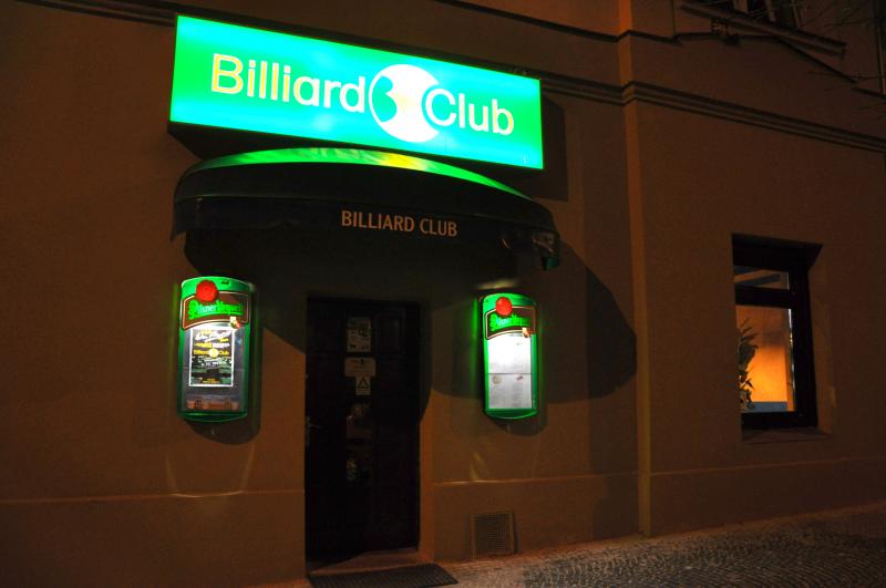 Billiardová herna v Praze, Řipské ulici čp. 24 tu pro Vás je již od června roku 1993 a nachází se v prostorách bývalého kina Slavie, třicet metrů od pražského náměstí Jiřího z Poděbrad.