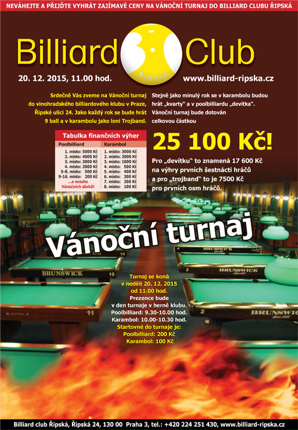 20. prosince 2015 se koná již avizovaný turnaj, vlastně turnaje v poolbilliardu a karambolu.