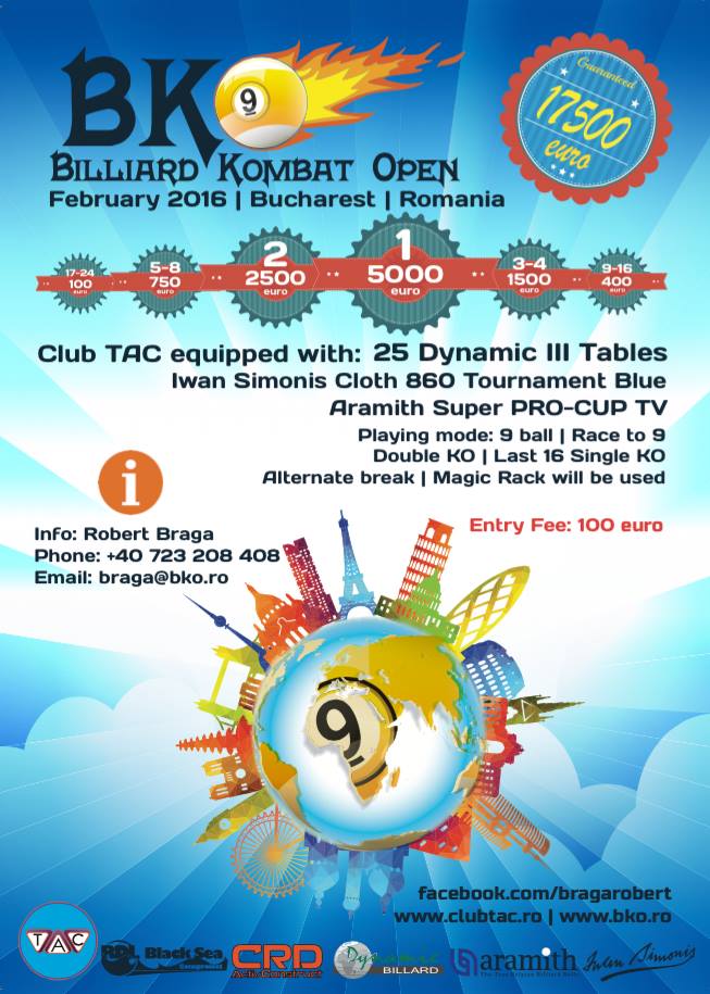 Přišla další zajímavá pozvánka na turnaj v Rumunsku (Bukurešť). Turnaj se koná v únoru 2016, startovné 100 €, prize money 17500 €.